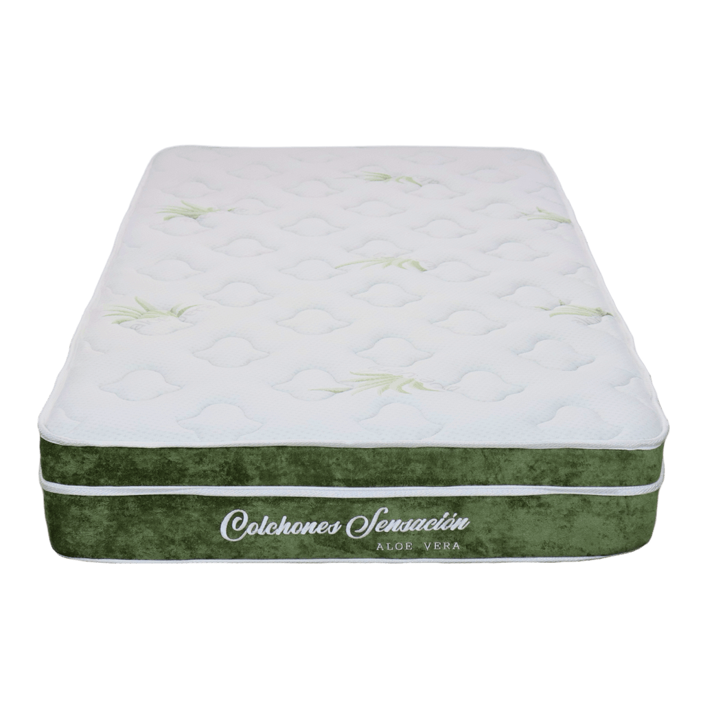 El modelo Aloe Sensación está diseñado bajo un principio de eficiencia: eliminar los resortes tradicionales para ofrecer un soporte de espuma de alta densidad que maximiza la durabilidad y minimiza el ruido.
